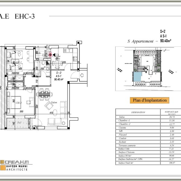 Cet appartement spacieux situé à EL MOUROUJ VI, offre un cadre idéal pour une vie confortable. Avec une surface total 106.67 m², cet appartement comprend un salon accueillant, deux chambres à coucher (Chambre -1, Chambre -2), une cuisine fonctionnelle, une salle de bains moderne, un espace buanderie (séchoir) et une terrasse couverte pour profiter de moments de détente.