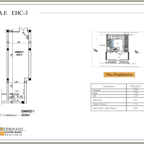 L’espace commercial situé à BEN AROUS, à EL MOUROUJ VI est idéal pour les activités commerciales. Avec une surface totale d’environ 40.00 m². Il dispose d’une hauteur sous plafond de 3.10 mètres.